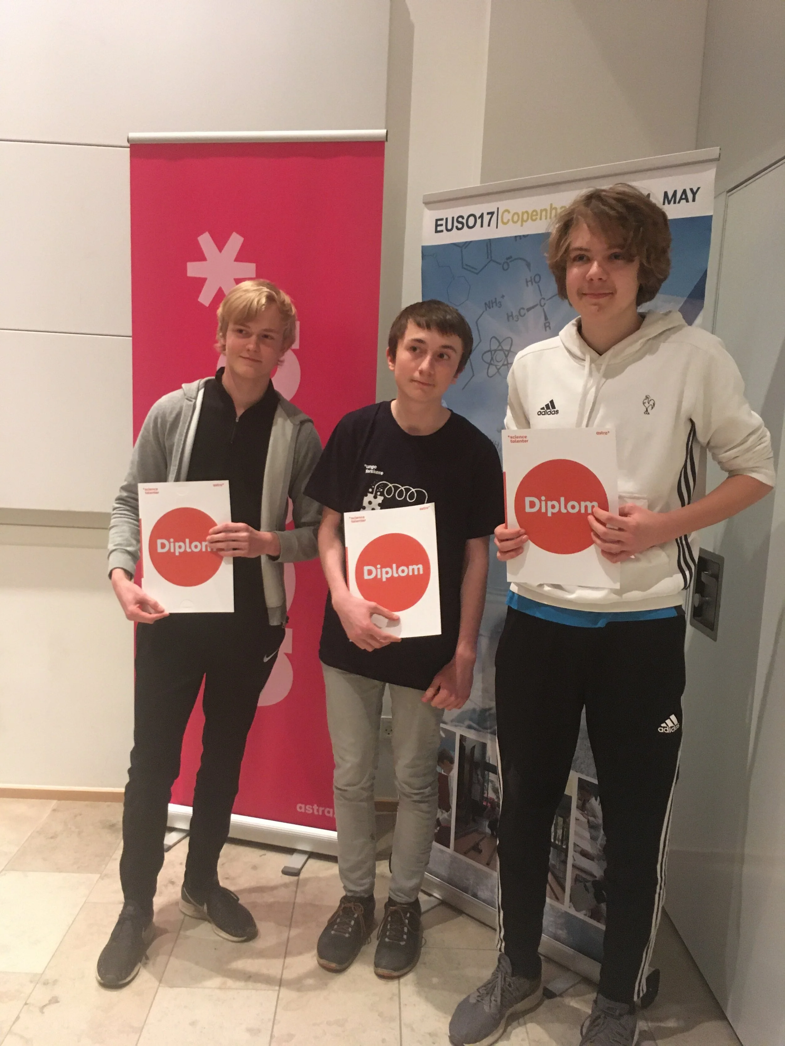 De to sidstnævnte skal repræsentere Danmark ved EUSO-finalen i Portugal 4.-11.maj 2019. Begge vil indtil da gennemgå to 1-dages træninger på hhv. Århus Universitet og DTU. Samt formentlig en del træning hjemme på gymnasiet for at klæde dem godt på til konkurrencen.